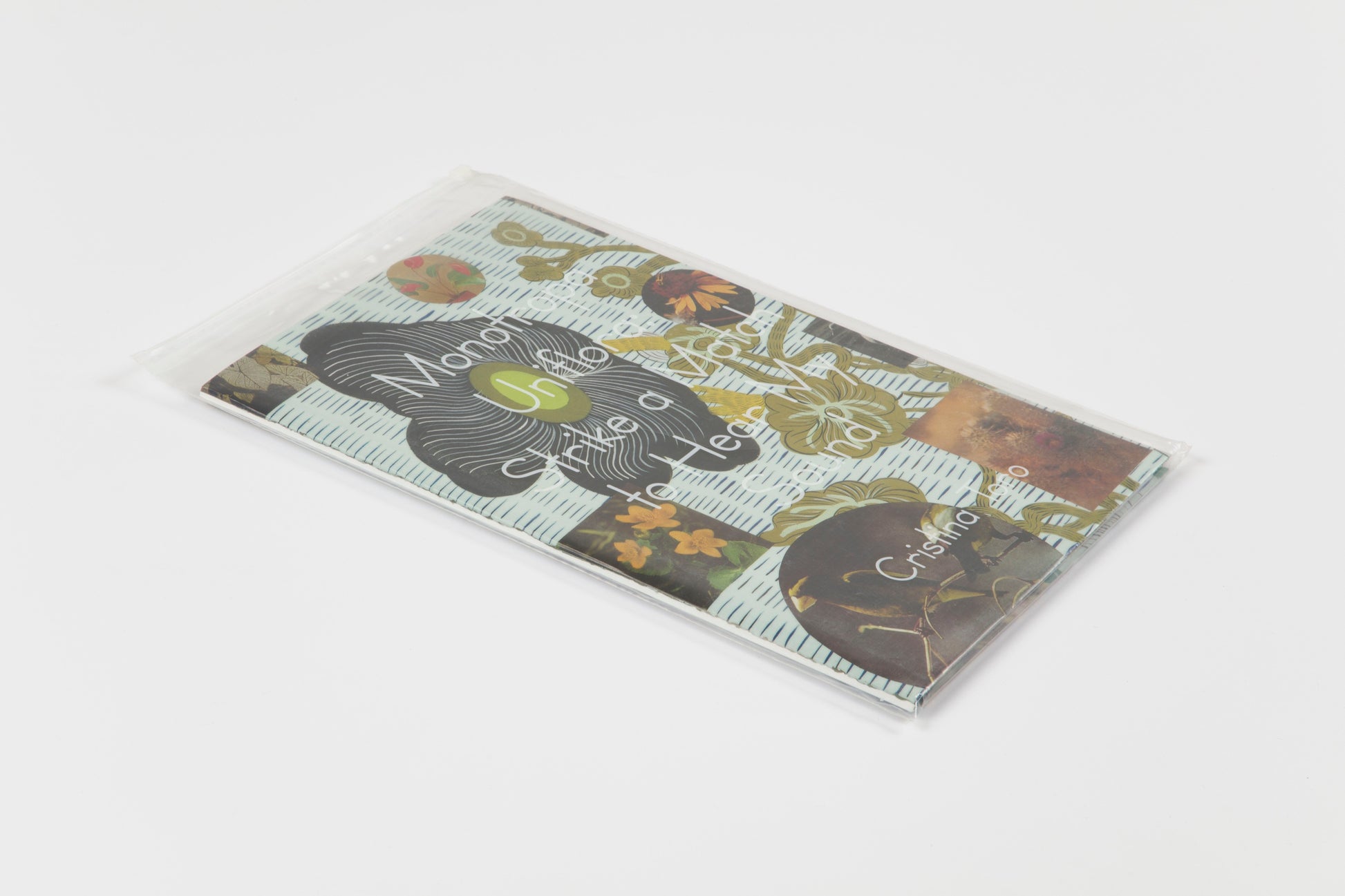 Catalog for Iruka (née Cristina) Toro’s exhibition, Monotropa Uniflora: Strike a Match to Hear My Sound. The book is wrapped in a dust jacket which unfolds into a collage with an extended interview and contributions from Susan Cianciolo, Trinie Dalton, and Kiki Smith.