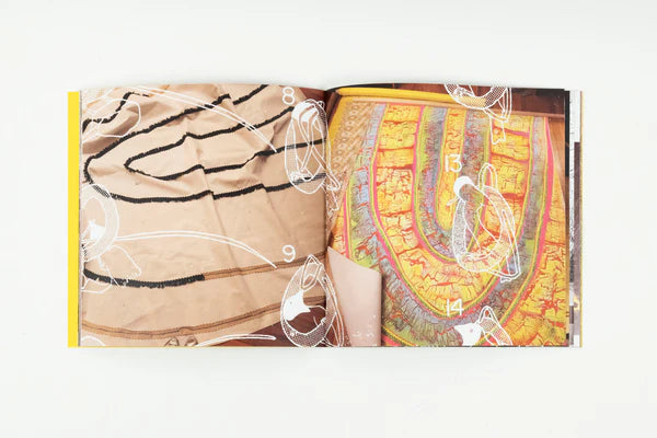 This publication chronicles a period of research and production in advance of Alvarado's exhibition Spiral Yellow. A new element introduced in Spiral Yellow is the use of found fabric collaged and sewn into the work’s surfaces, further integrating textile into the paintings and simultaneously expanding the language of the hanging works with a set of assemblage qualities.